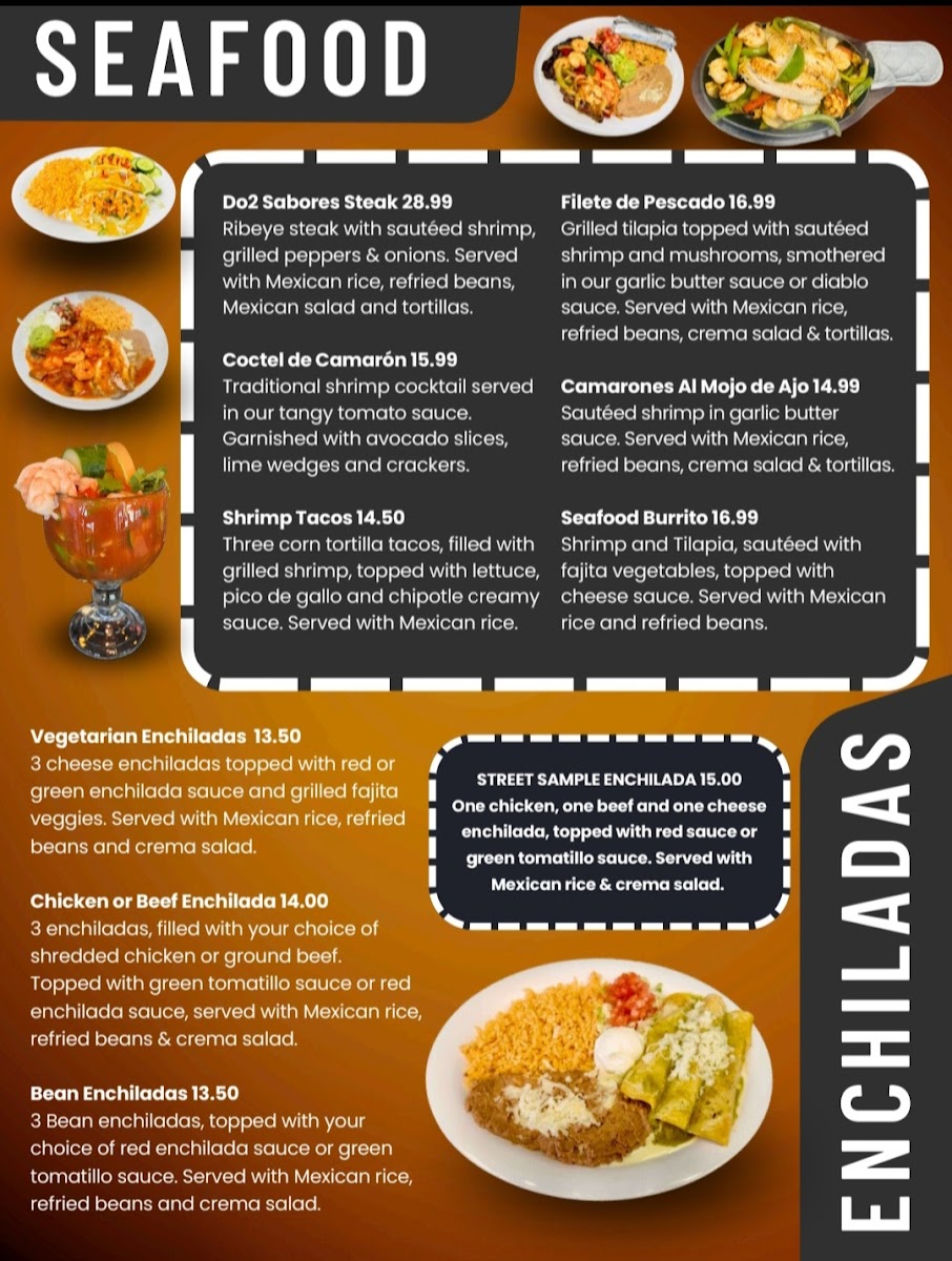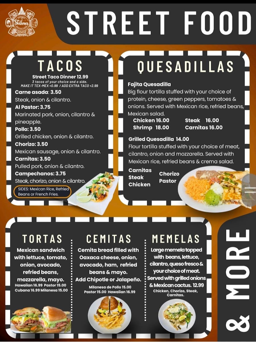 Dos Sabores Mexican Grill And Cantina offers a menu that reflects the rich, comforting flavors of Mexican and Tex-Mex cuisine, perfect for casual meals with family or friends. The selections range from hearty burritos and flavorful tacos to satisfying tortas and traditional dishes like menudo and chilaquiles, all complemented by classic sides such as rice and beans.
